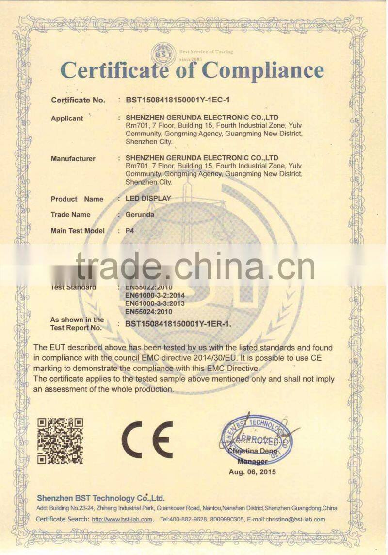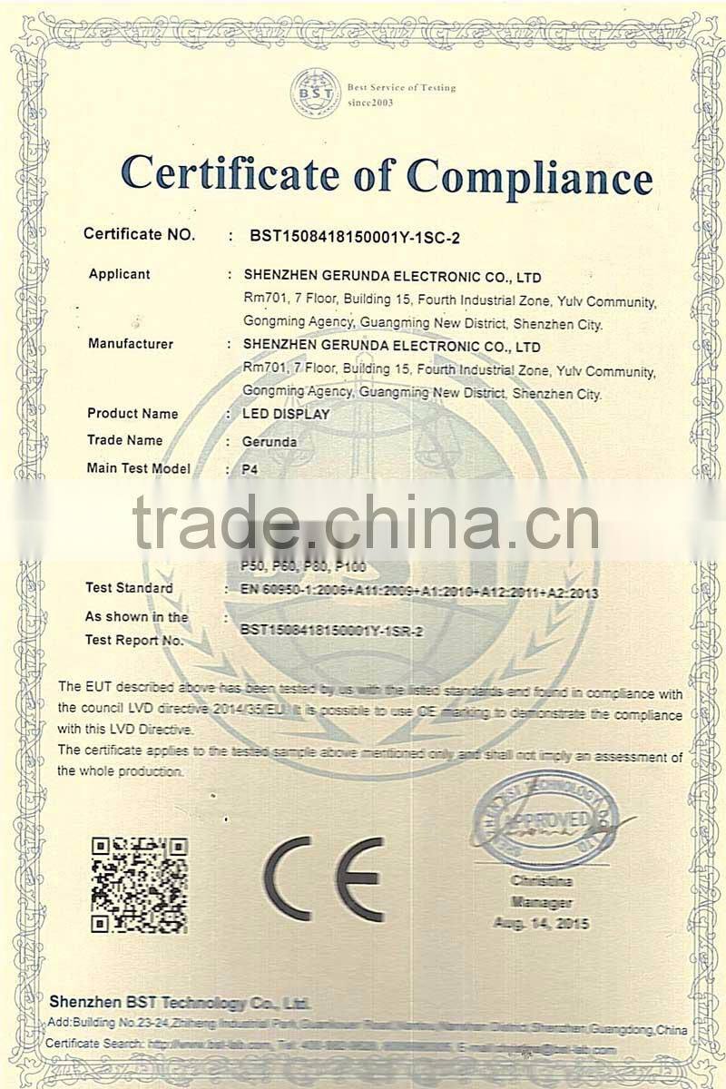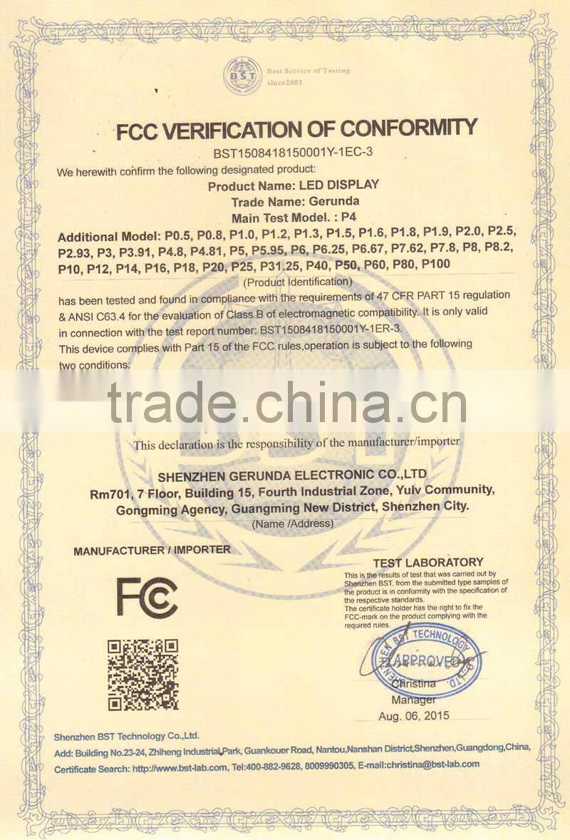 With RMB 30million registered capital and over 6000 square meters plant, after many years efforts, Titans has won the titles "Premium export supplier", "China's Top 100 innovative enterprise", "China's Quality&Service AAA enterprise", "Outstanding credit enterprise", and has been awarded "the innovative leading brand of China photoelectric display industry.", won "Asia's most innovative brands." in 6th Asian brands show. Furthermore, Titans has a very strict full quality system manager ISO9001:2008, and is well-known for innovation, has developed and produced all kinds of LED products which gained 66 national patents and get CE, FCC, RHOS, CCC, CB, UL certificates etc approved.
