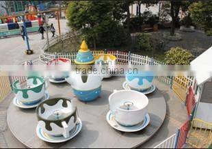 Rotating coffee cup rides is known as coffee cup and saucer, coffee cups around, and tea cup rides. It is a kind of rotating amusement rides, consists of 6 cups / 9 cups, each cup can seat 4 players.