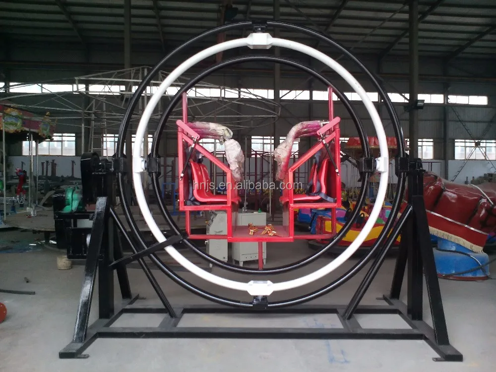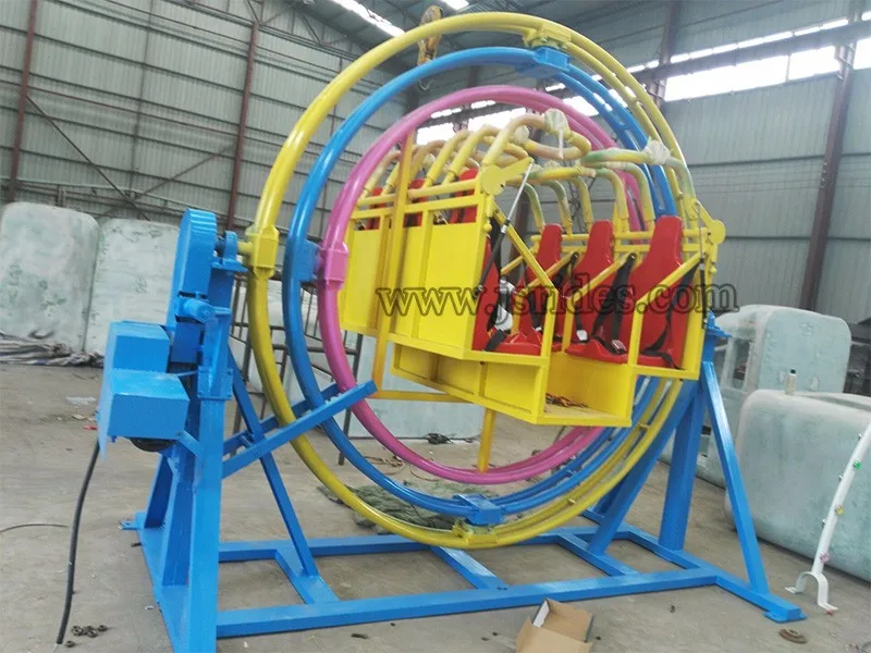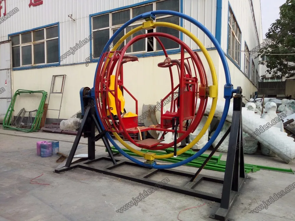 Human gyroscope is a cheap but interesting amusement rides, suitable for children and adults, after the player sit down well, the gyroscope will rotate in 360 degree, player can feel the weightlessness feeling and increase their balance ability.