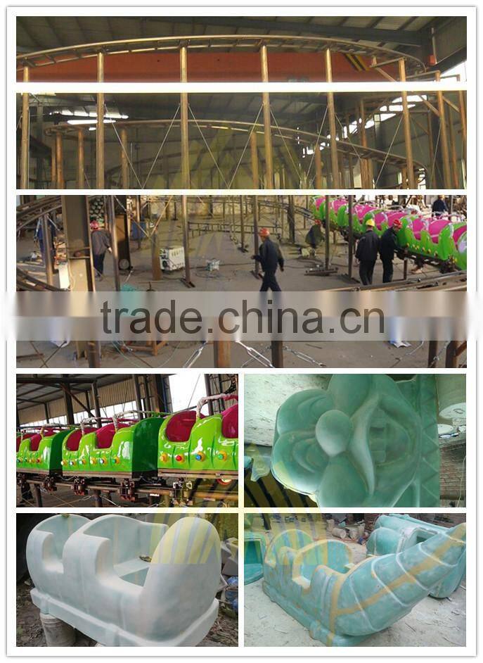 1). Roller coaster is a popular amusement park rides for kids and adults. This product can be customized to 12 seats/16 seats/20 seats,etc. Roller coaster is consist of headstock & tailstock & middle cabins. Headstock can load 2 persons& tailstock can load 2 persons & middle parts each cabin can load 4 persons .(kids&adults)