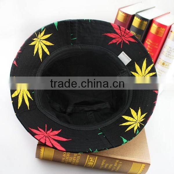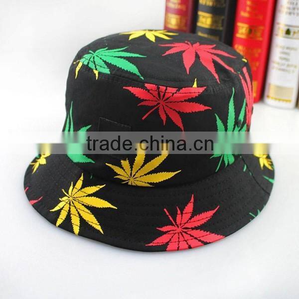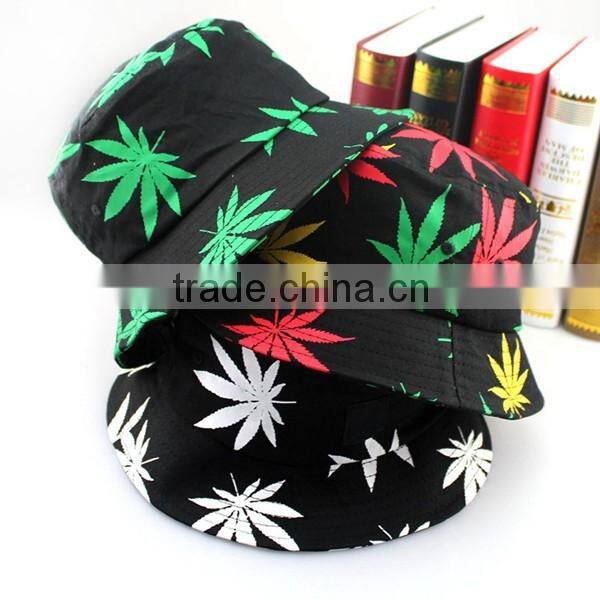 2016 New Fashion Hip Hop Green White Leaf Print Fishing Caps Weed Bucket Hats For Mens