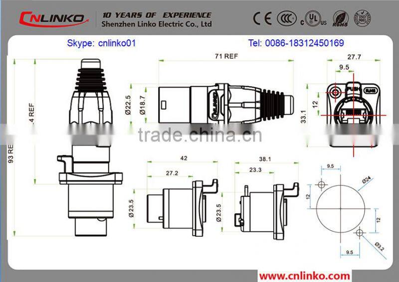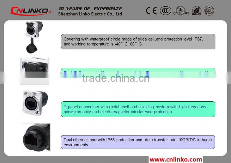 1.Compliance with D level or CAT 3e standard of EIA568B and ISO/IEC11801,RJ45 connectorscompatible CAT5e,data transfer rate reach 10GBIT/S