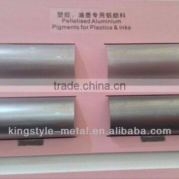 Aluminum pastes, a kind of metallic pigments, is formed by a great amount of tiny aluminum flakes. It is often used in dope, printing ink, and plastics. When used with other paints, special effect may appear. The particle diameter of aluminum pastes is larger than that of color pigments. While the particle size of color pigments is in the wavelength range of visible light, the flake diameter of special effect pigments is generally around 5-45μm.