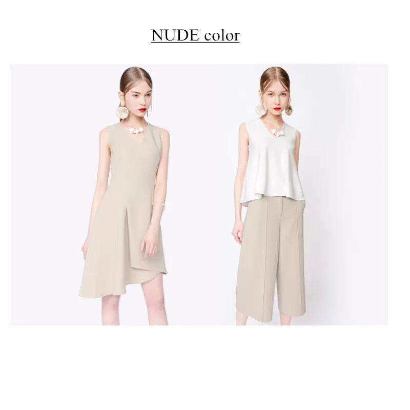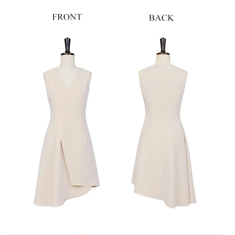 Nude Women Sleeveless Dress With V-collar Party Formal Dress