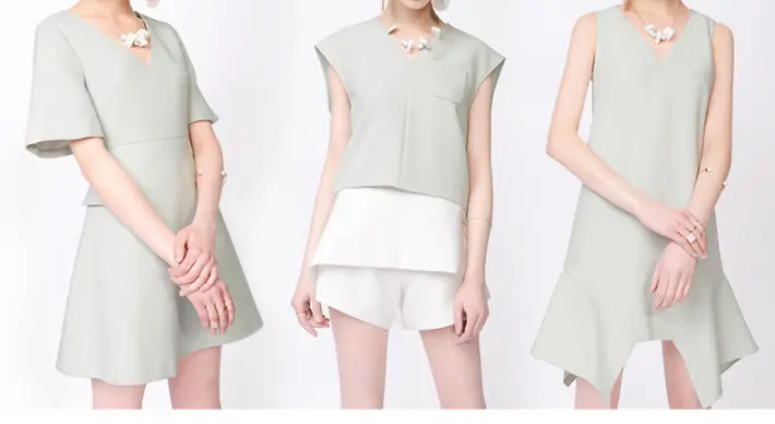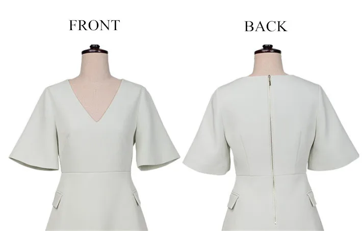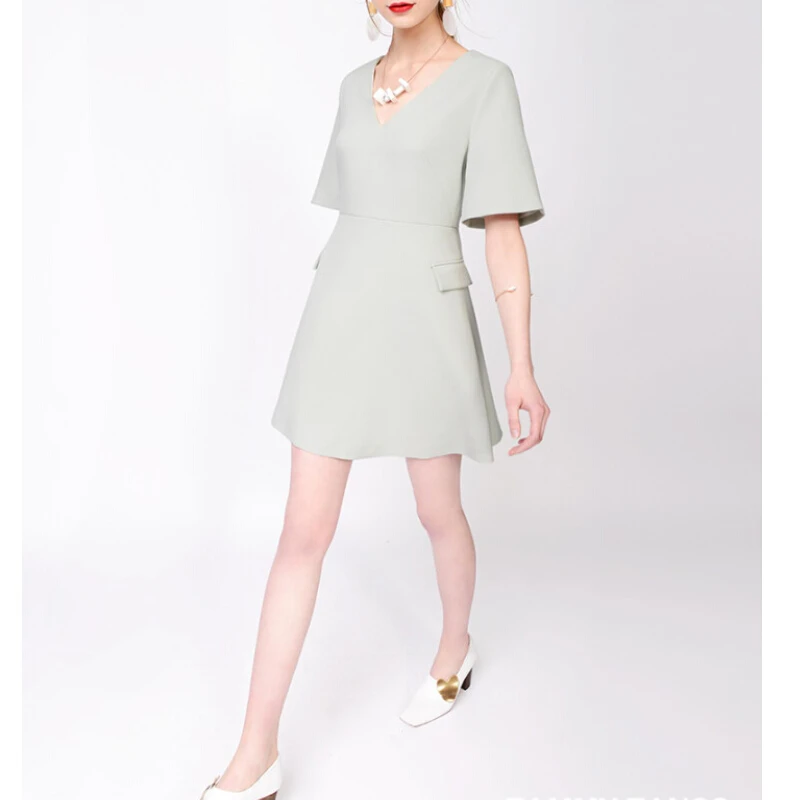 This is a trendy fashion A-line dress with V-collar, which is make you look more slim and attractive. Above the knee dress are party-perfect option. It is light color series, which is a quite stylish dress for modern ladies.