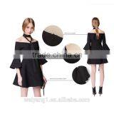 Korean Style Flare Sleeves Prom Party Casual Women Loose-fitting Dress With Hollow Collar