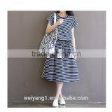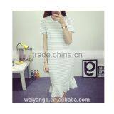 New Fashion Mermaid Women Striped Dress Loose Cotton Girl Dress With Pocket