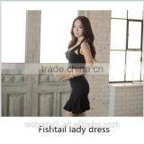 High-waist Sleeveless Women Dress Sexy Fashion Black Party Dress With Fishtail Hem and V-neck