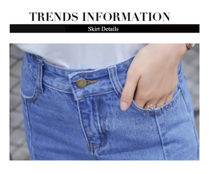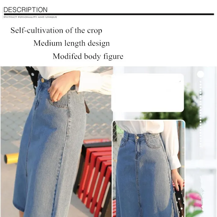 This is 2016 trendy denim skirt with high-waist and slit in front to show your better body figure.