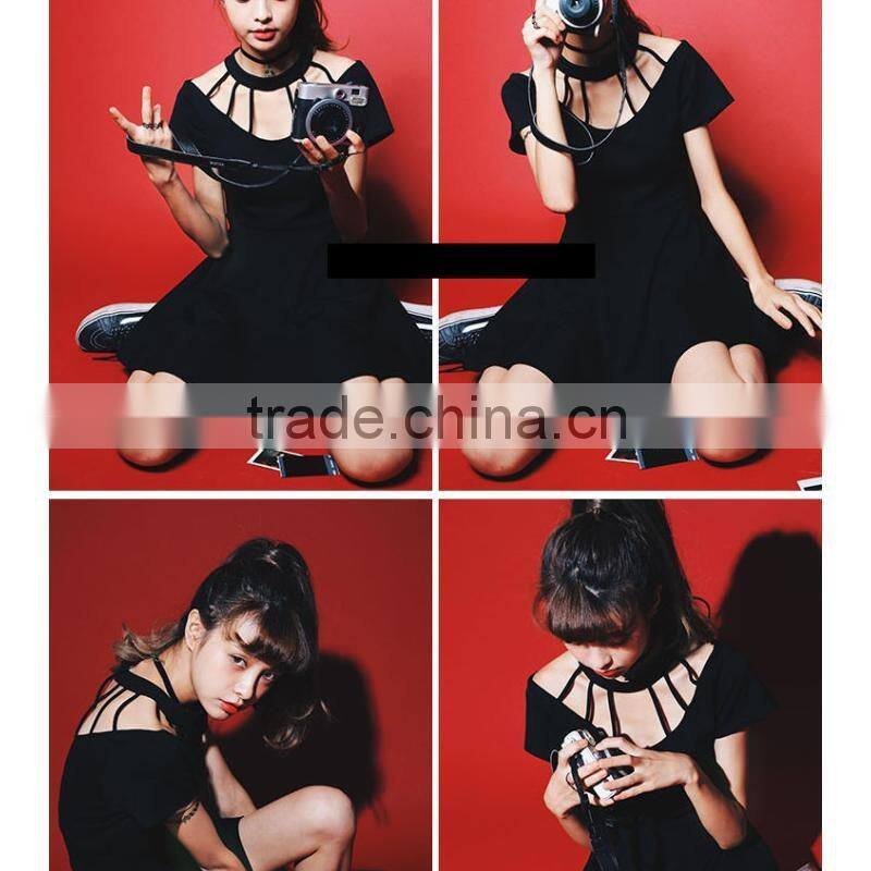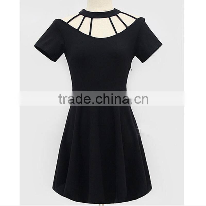 2016 High Fashion High-waist Black Hollow Out Sexy Women Dress