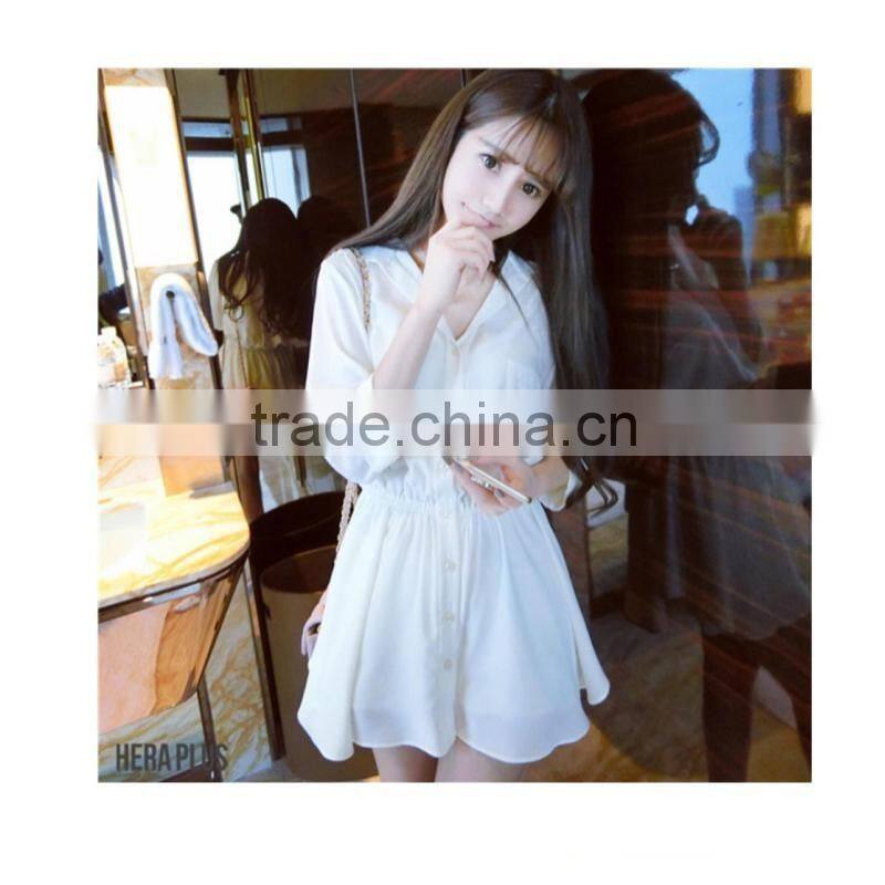 Home > Products > Dress > Fashion Sweet Teen Girl 3/4 Sleeve White Shirt Dress With Flare Peplum Hem Women Shirt Dress
