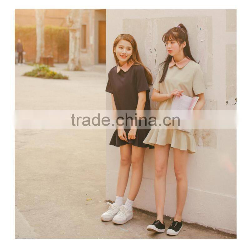 Home > Products > Dress > Sweet Loose Flouncing Short Sleeves Women Dress Turn Down Collar Girl's Dress