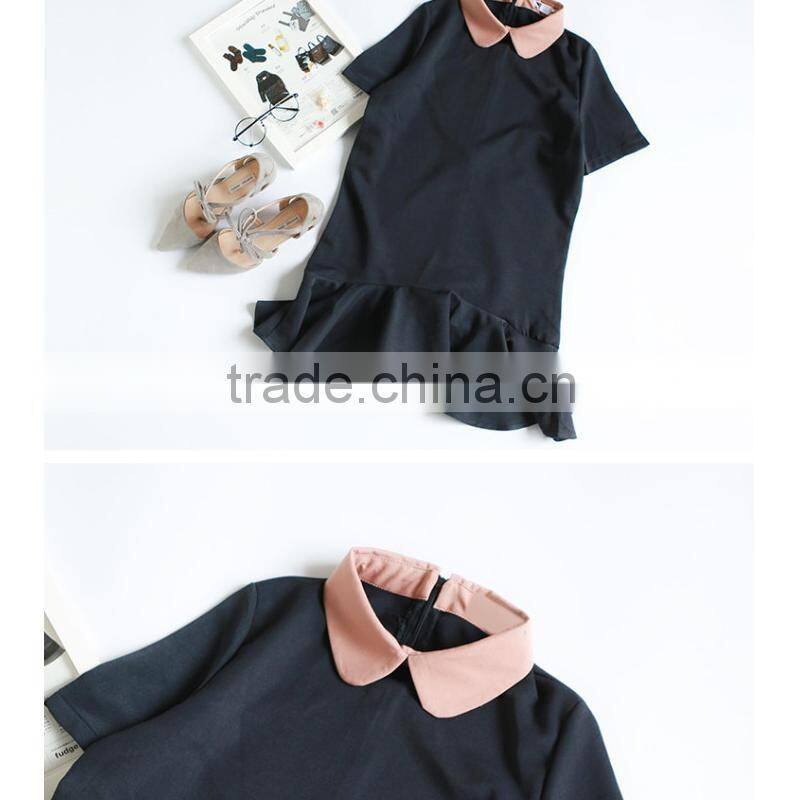 Sweet Loose Flouncing Short Sleeves Women Dress Turn Down Collar Girl's Dress