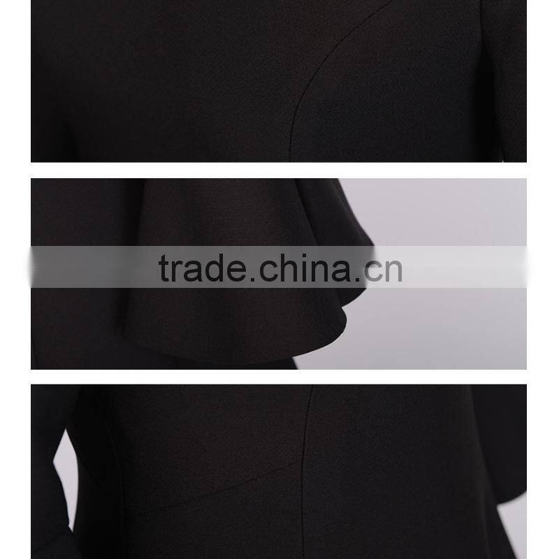 2016 Most Fashion Long Sleeves Fluted Hem Women Dress Semi Formal Cocktail Women Dress