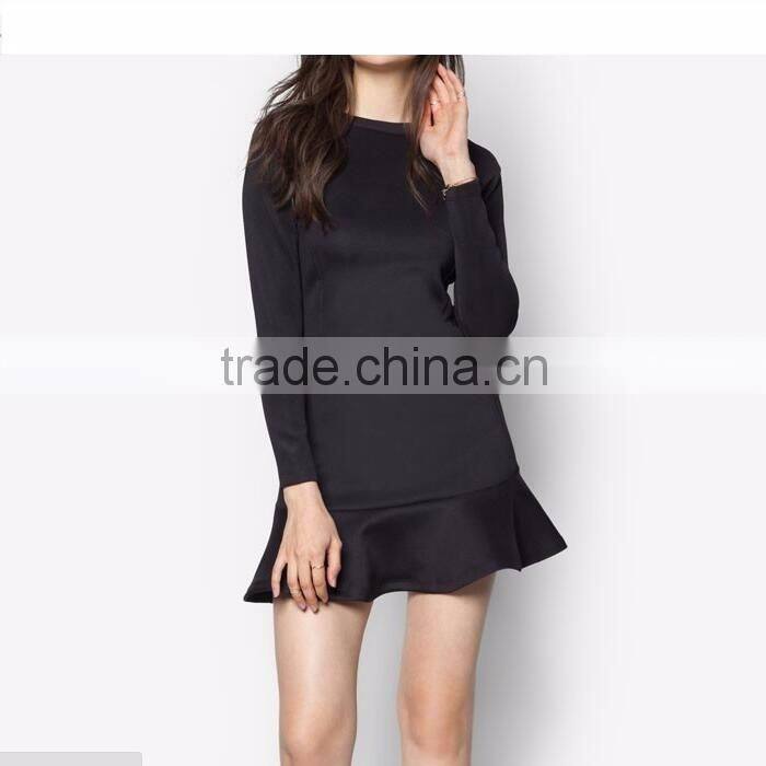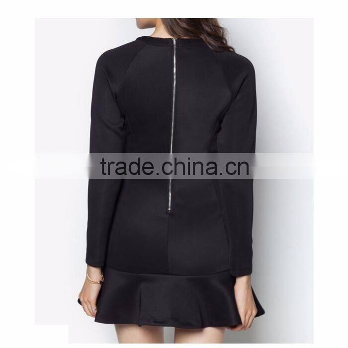 2016 Most Fashion Long Sleeves Fluted Hem Women Dress Semi Formal Cocktail Women Dress