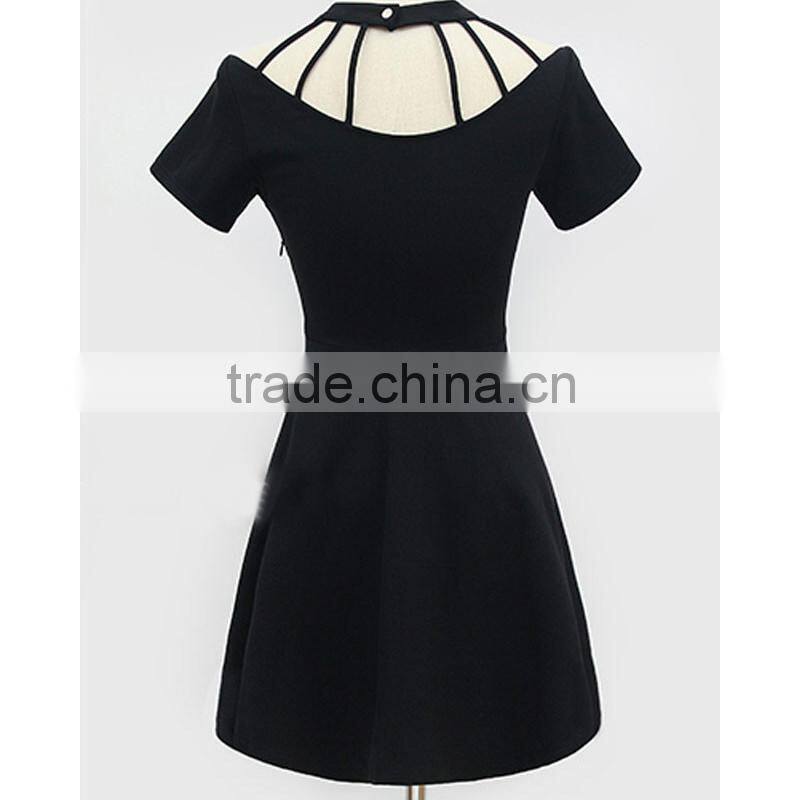 Short Sleeves V Neck Skater Dress Women Latest Fashion Summer Dress