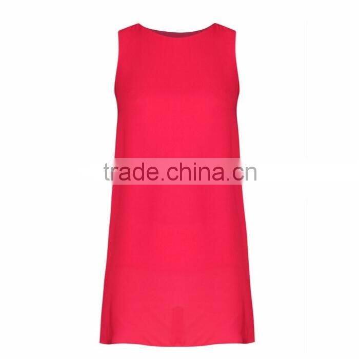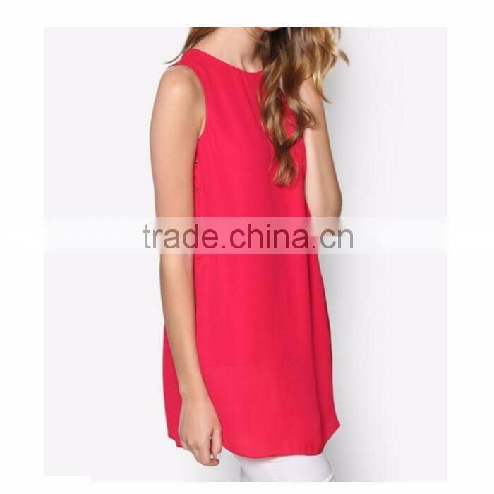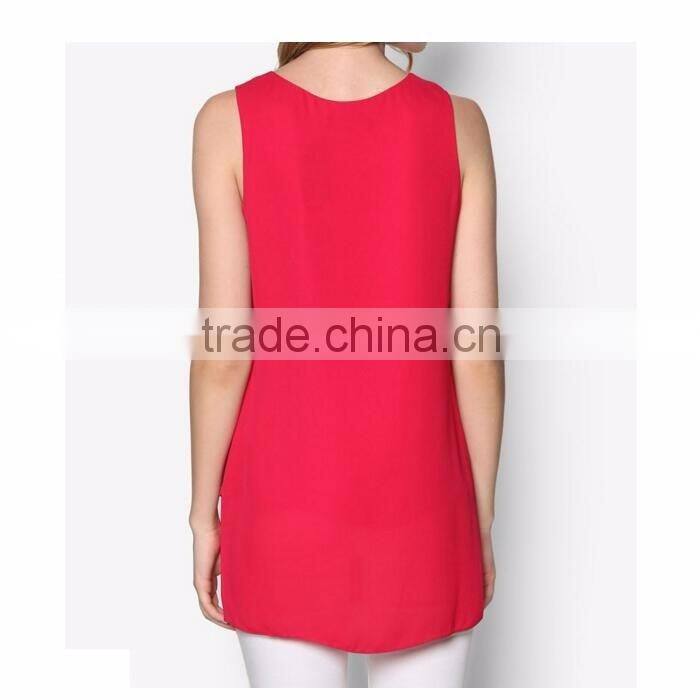Fashion Raspberry Eyelet Tie Side Top Sleeveless Loose Women Blouse