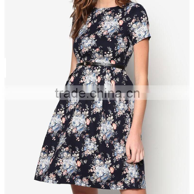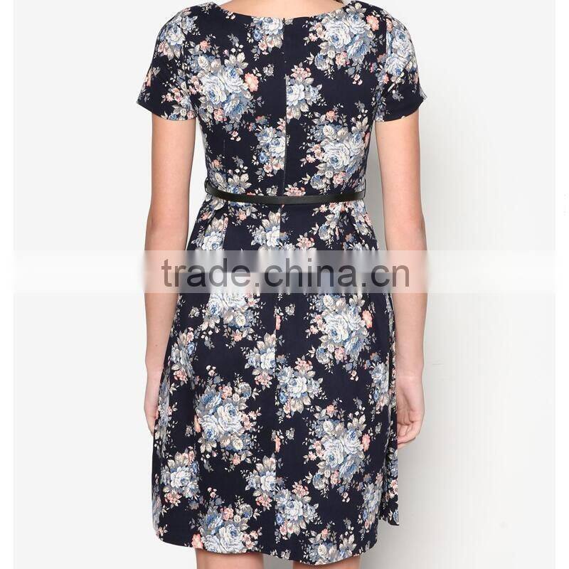Fashion Floral Printed Midi Skater Woman Summer Dress