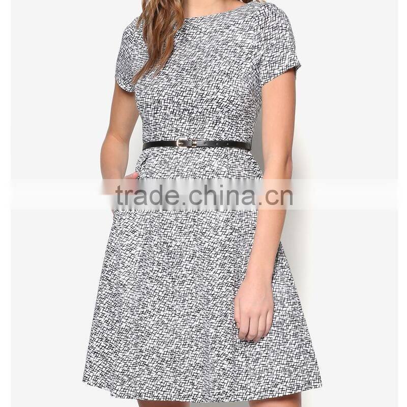 Short Sleeves V Neck Skater Dress Women Latest Fashion Summer Dress