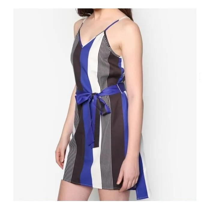 White Stripe Medium Length Girl Skirt Slit Skirt Rim Women Summer Dress