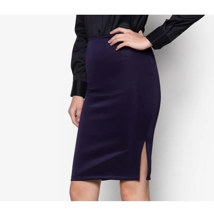 Women Pencil Medium Length Skirt With Slit on Both Side