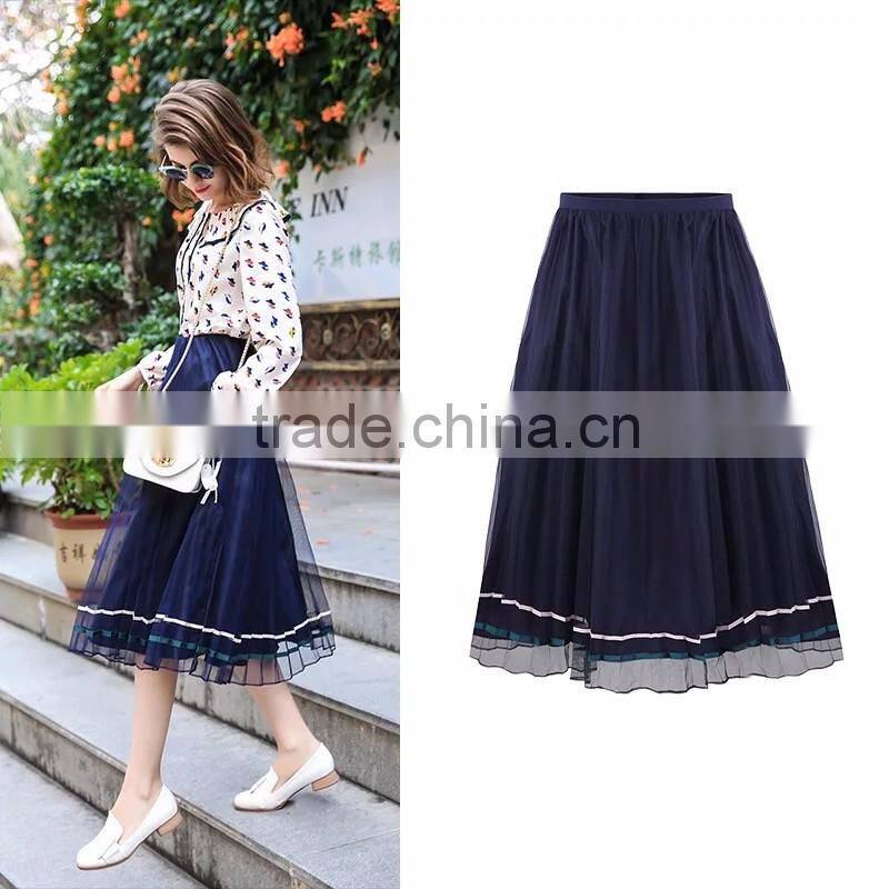 Last Fashion Gauze Long Double Skirt Pleated Stylish Girl Skirt