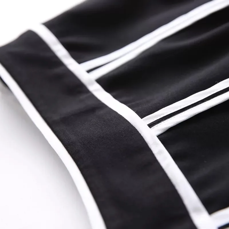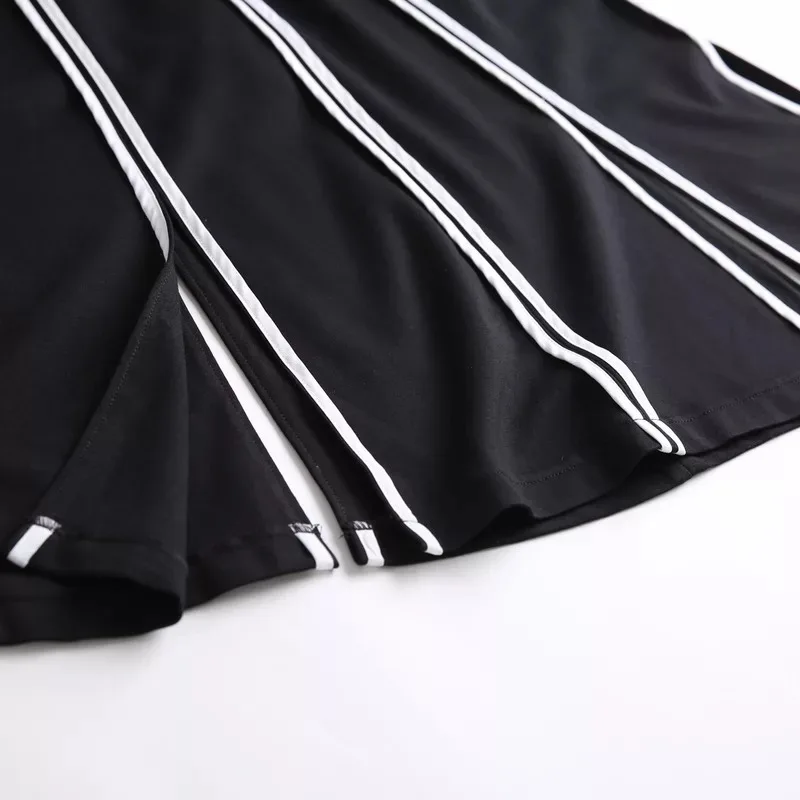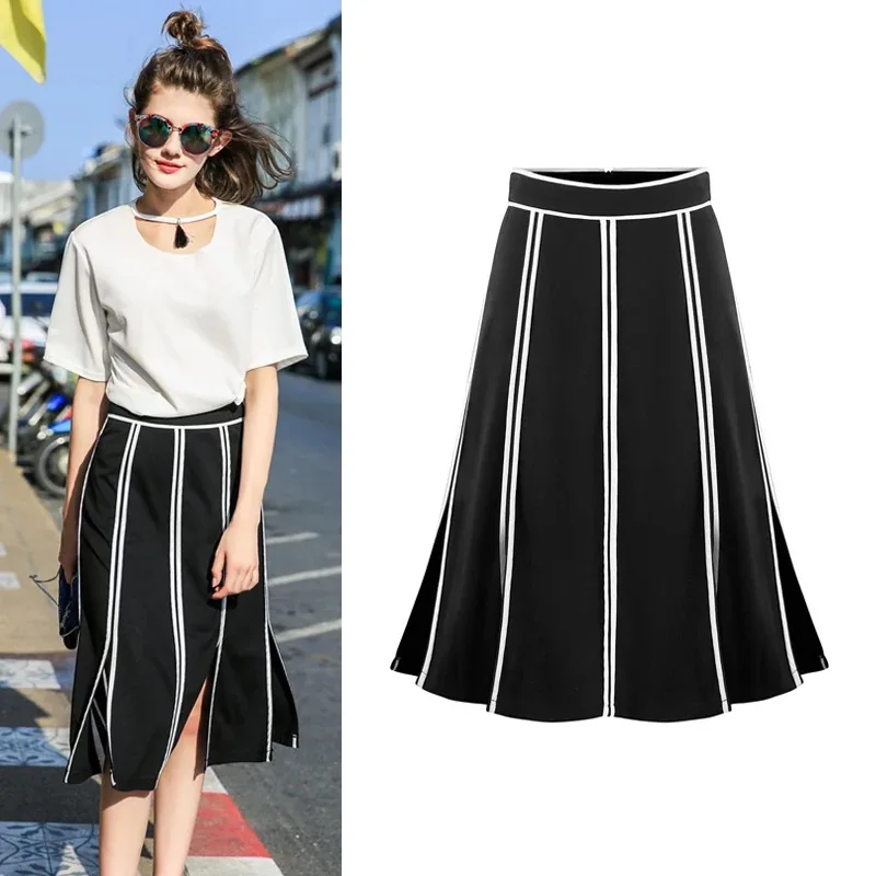 White Stripe Medium Length Girl Skirt Slit Skirt Rim Women Summer Dress