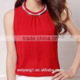 Wholesale Multiple Color Chiffon Girl Shirt Gems Decorative Sleeveless Women Blouses