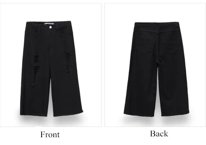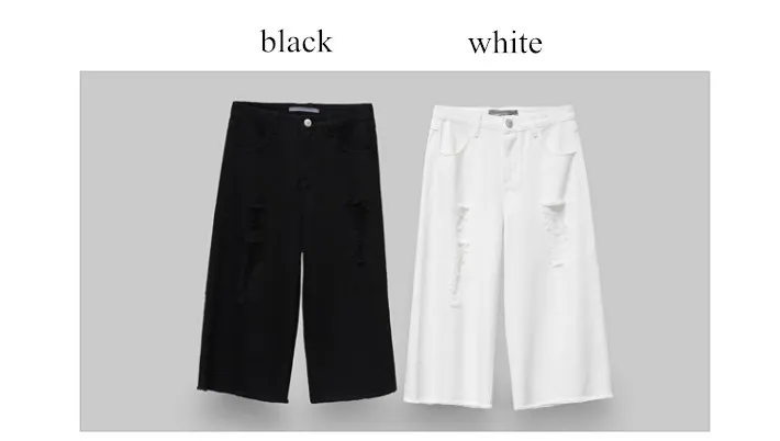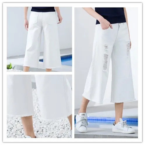 Trendy Loose Seven Point Ripped Hole Women White Jeans Pants