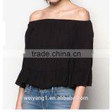 Chinese Factory Direct Wholesale Textured Ruffle Off Shoulder Woman Long Sleeves Top Shirt