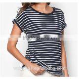 China Factory Direct Wholesale Stripe Short Sleeve Tee Woman T Shirt