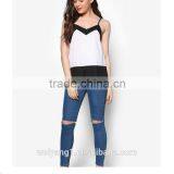 Chinese Factory Direct Wholesale Love Color Blocked Cut Out Cami Fashion Woman Top Shirt
