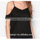 Basic Cold Shoulder Tee Strap Black Woman Off Shoulder Blouses