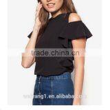 Chinese Factory Direct Wholesale Love Cold Shoulder Ruffle Woman Top Shirt