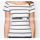 China Factory Direct Wholesale Petite Stripe Bardot Top Woman Short Sleeves Blouse