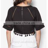 Raglan Sleeve Crop Top With Tassel Hem Women Short Sleeves Shirt