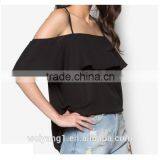 Chinese Factory Direct Wholesale Love Cold Shoulder Ruffle Woman Top Shirt