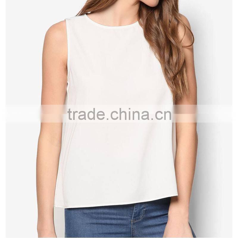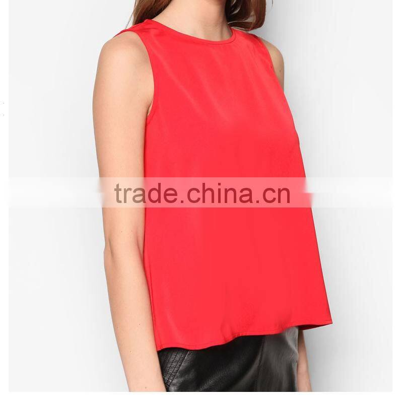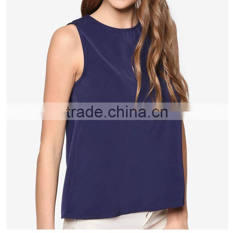 China Factory Direct Wholesale Woven Tank Polyblend Women Sleeveless Shirt