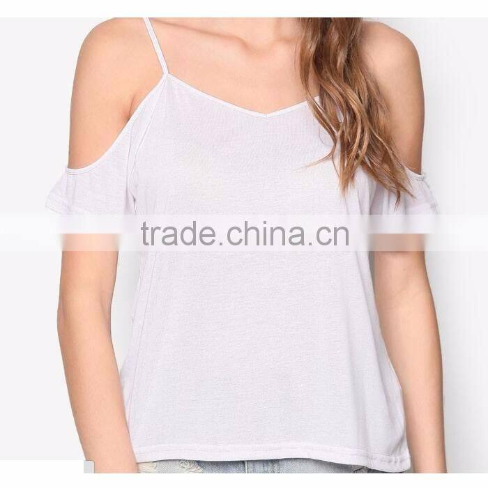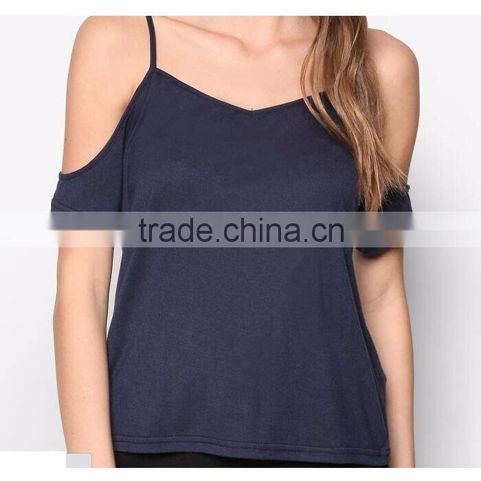 Basic Cold Shoulder Tee Strap Black Woman Off Shoulder Blouses