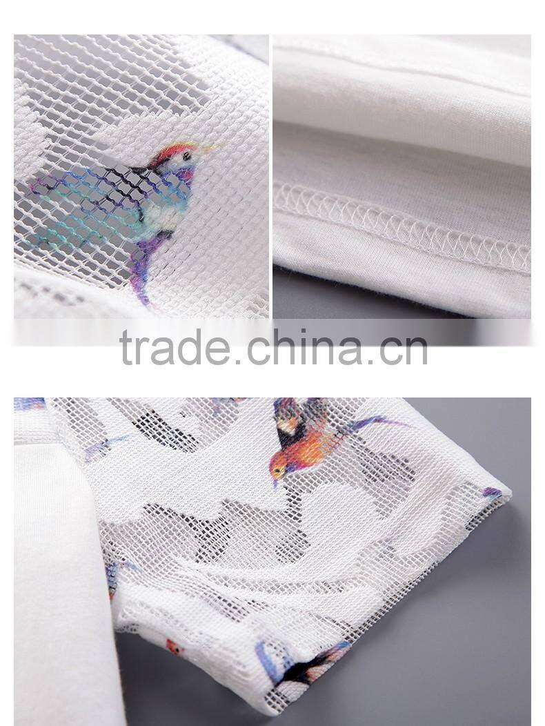 Round Collar Printing Bud Silk Gauze Shirt With Short Sleeves