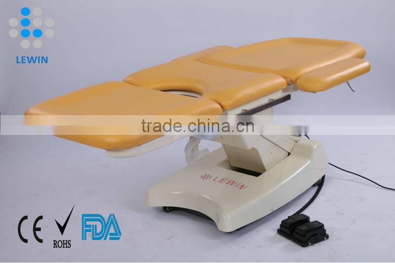 LDF-100 hospital gynecology table is for the modern hospital elaborates designed with childbirth, gynecologic operation, diagnosis and examination, including emergency caesarean section in a variety of medical functional bed. The bed up and down, back plate turning all controlled by the microcomputer controller. The lowest position is up to 480mm, fully meet the doctor on the low position operation bed needs. Table selection of high quality polyurethane foam, leather bags, easy cleaning and disinfection.