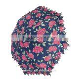Flower Printing Beautiful Girl Long Umbrella With Lace Parasol