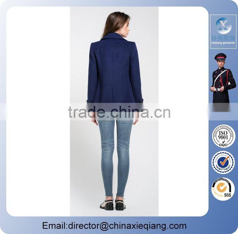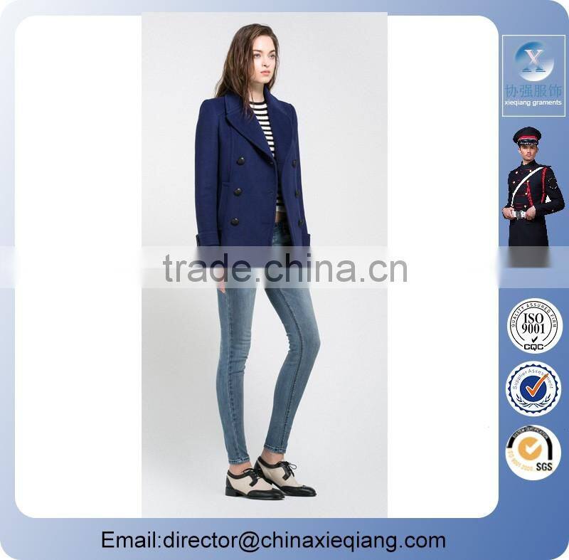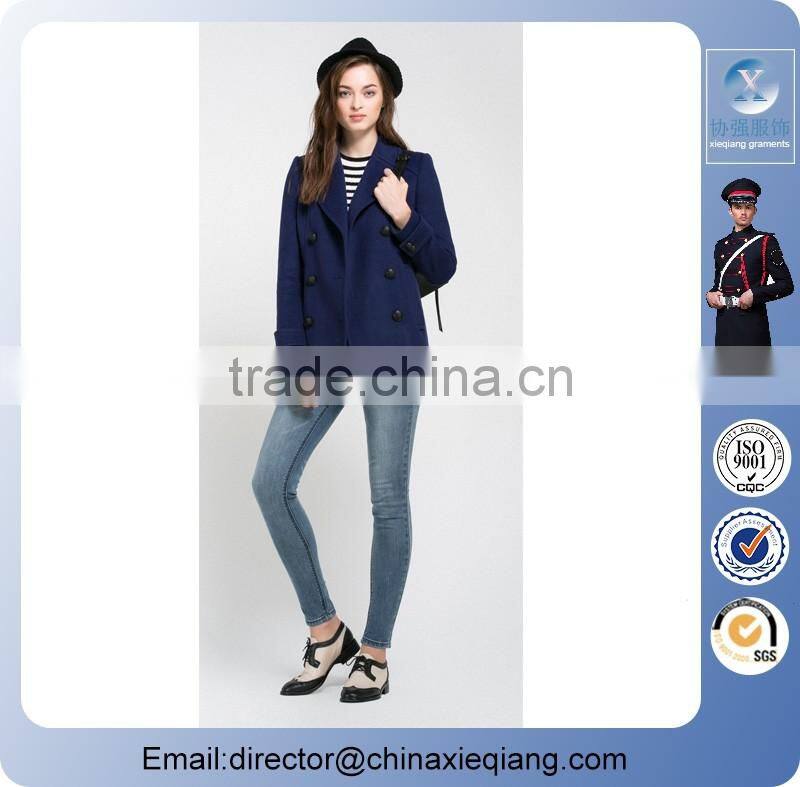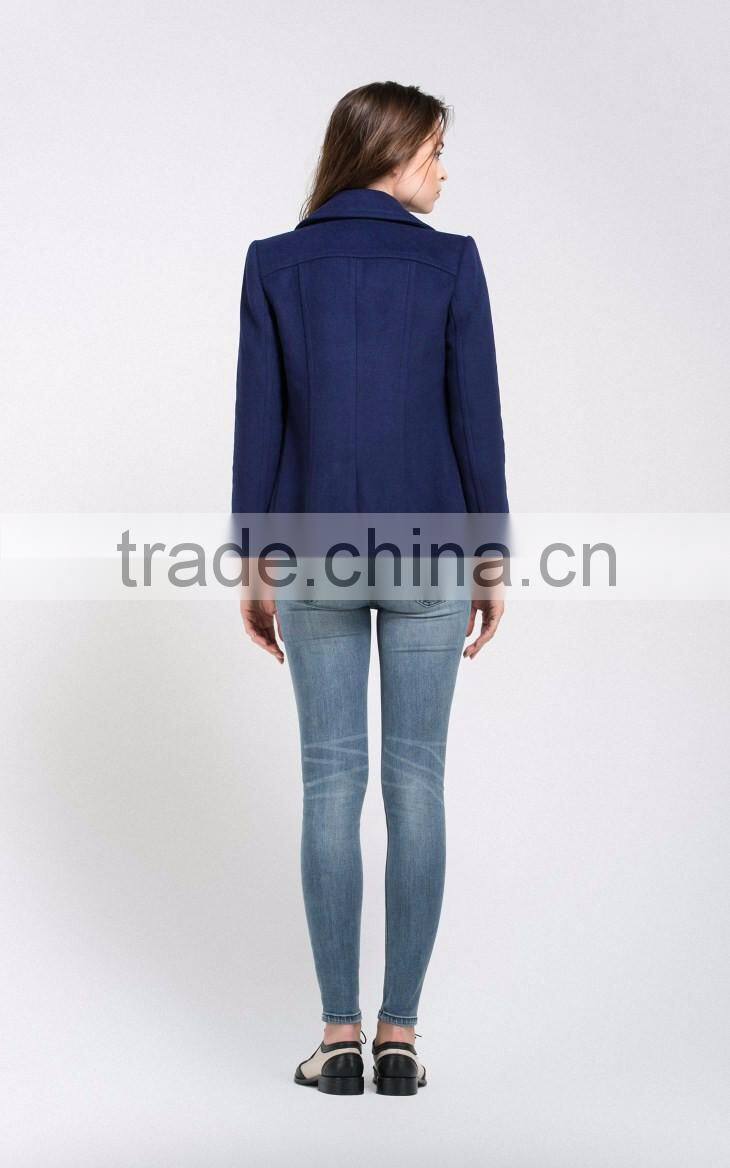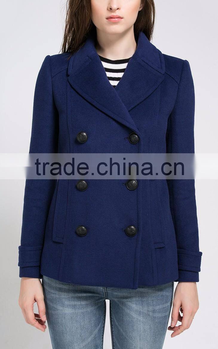 2016 Fashion Double Bteasted Winter Coat Navy Blue Coat