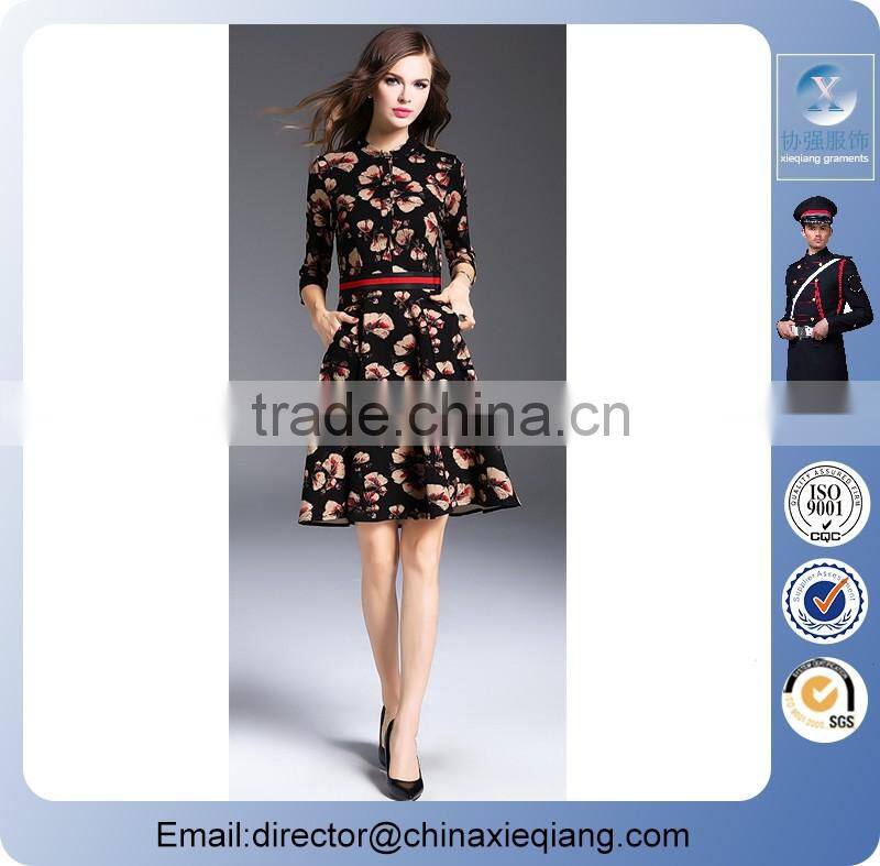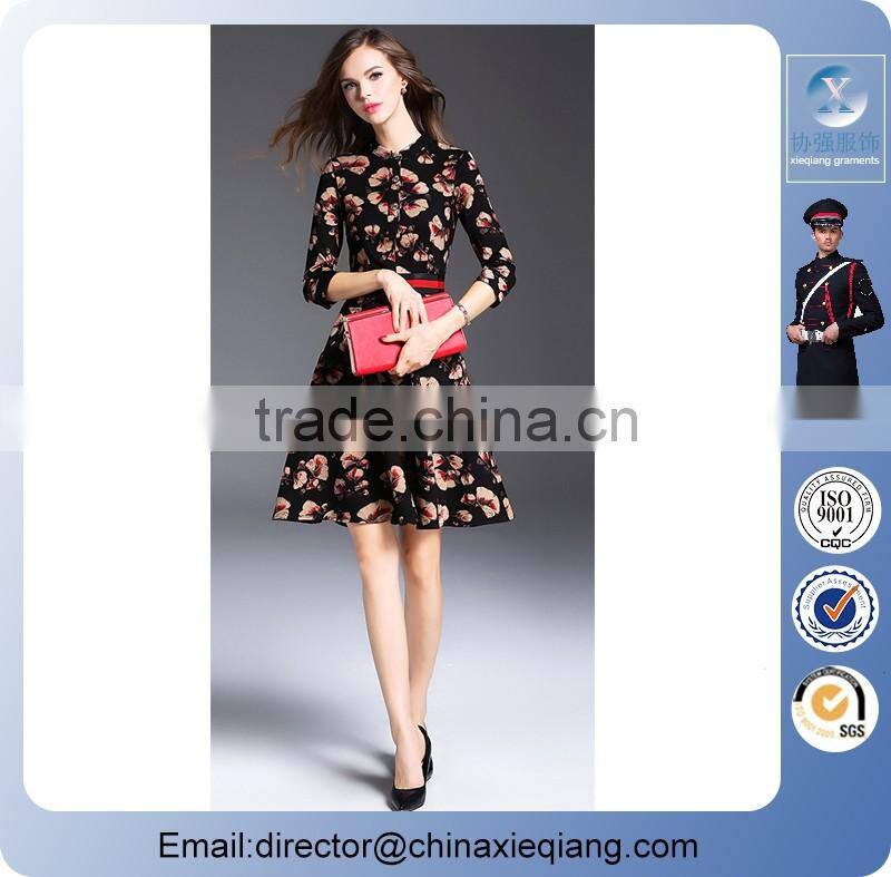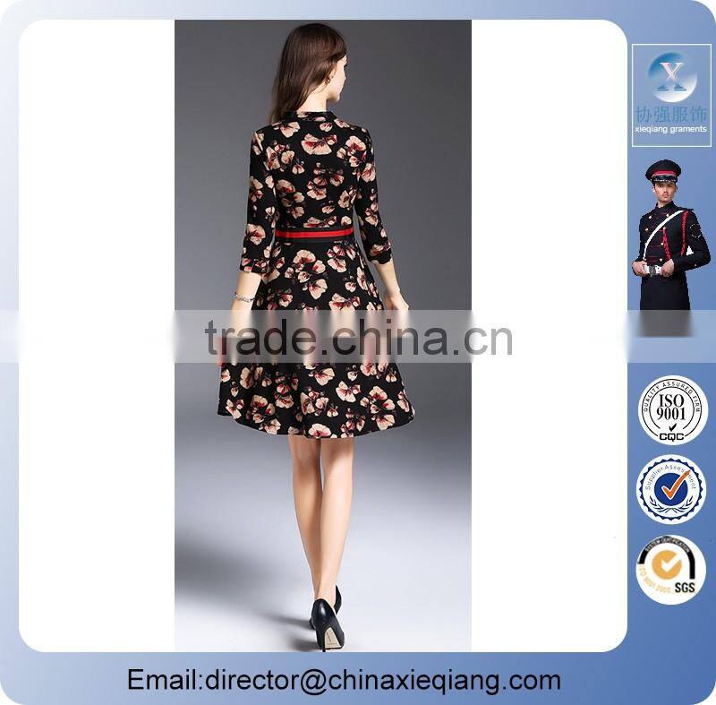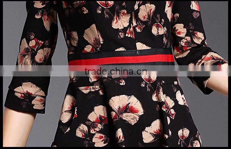 2016 Fashion Ladies Designer Dress Flower Printed Dress for Women