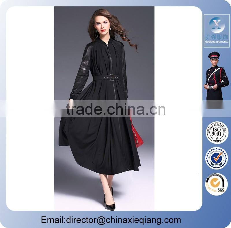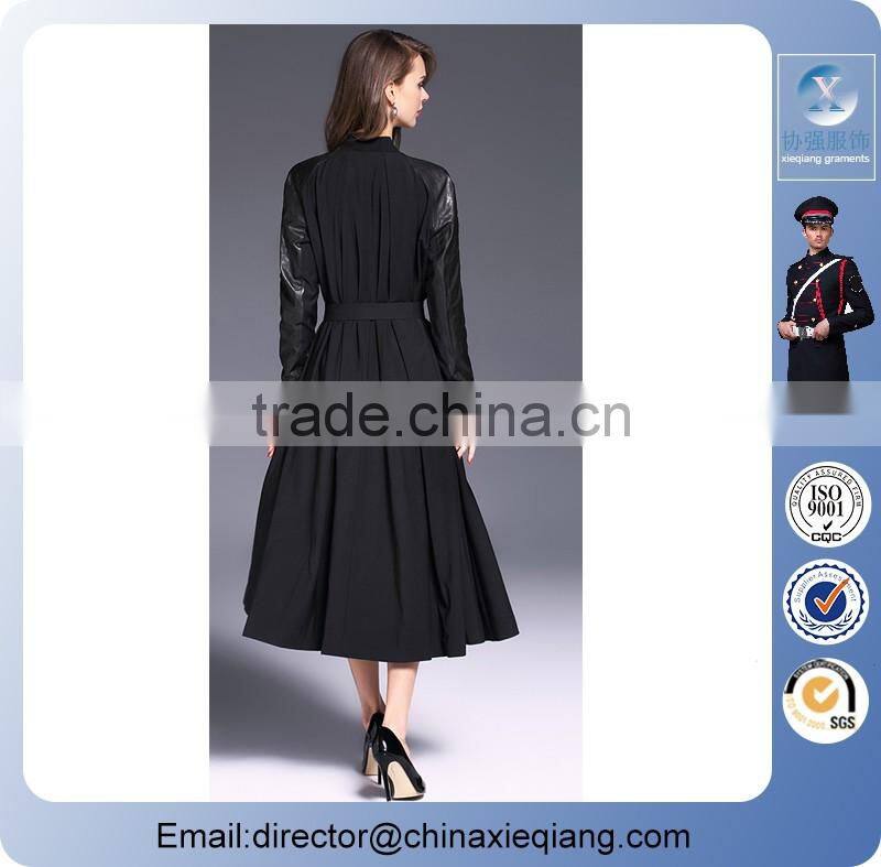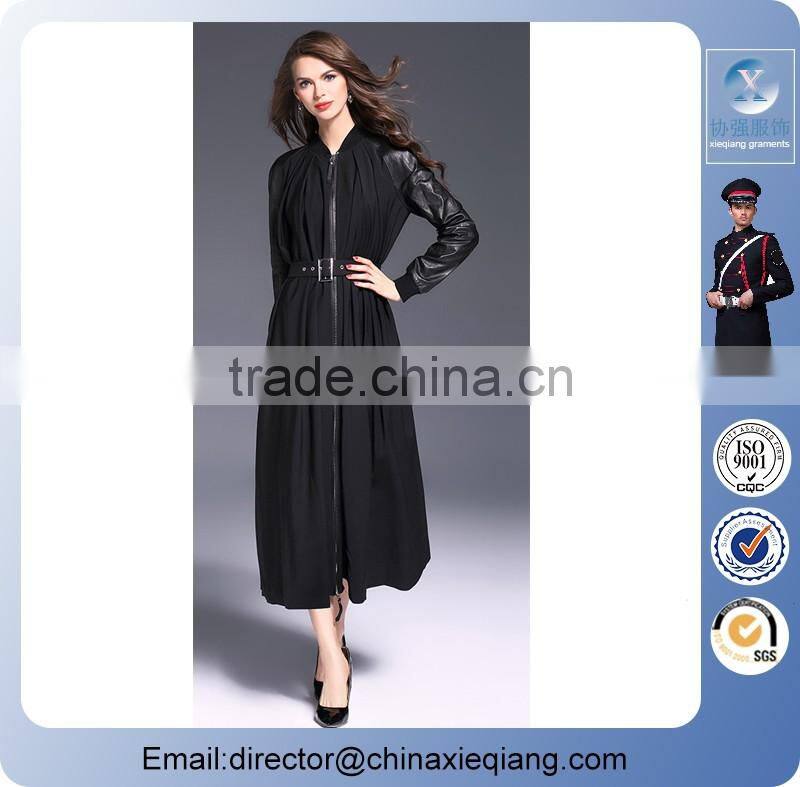 Home > Products > dress > 2016 Fashion Ladies Designer Leather Spliced Dress Maxi Winter Dress for Women