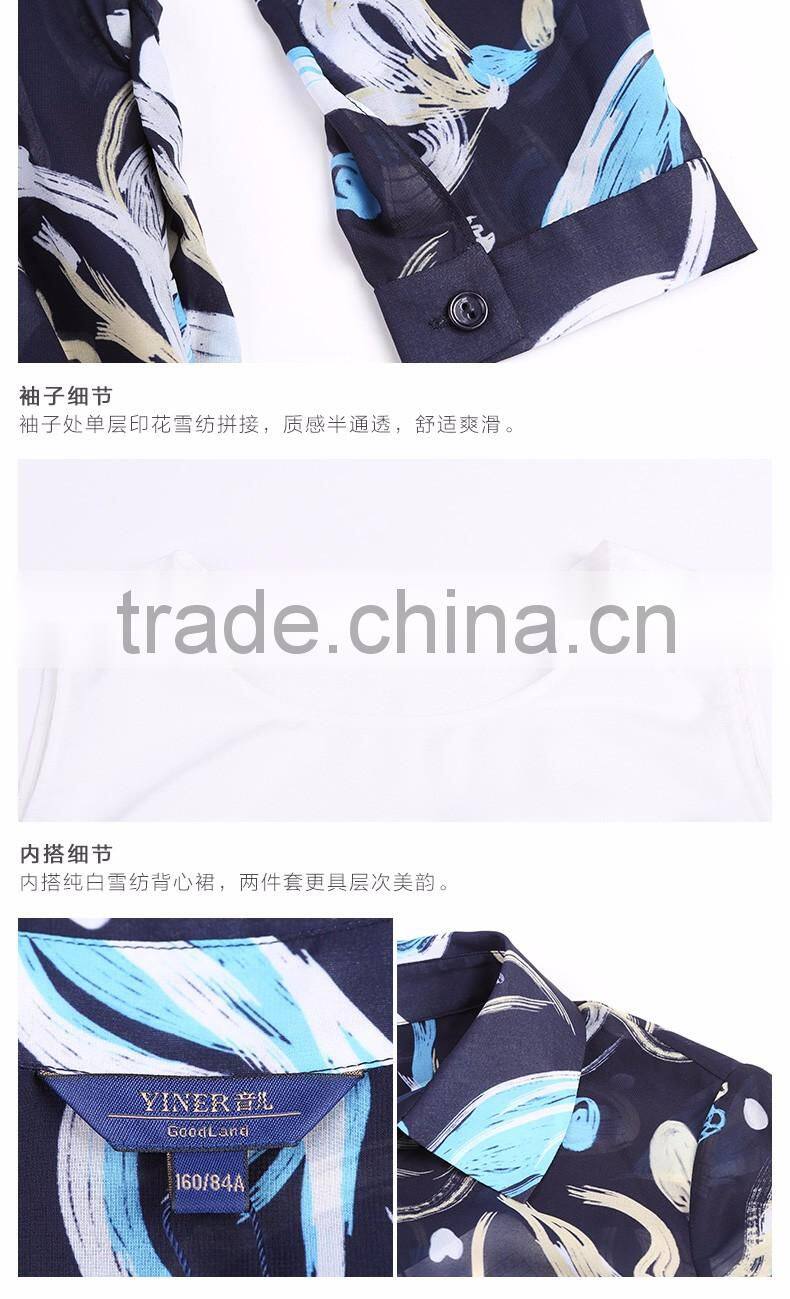 2016 Fashion Ladies Casual Pleated Dress Floral Dress for Women