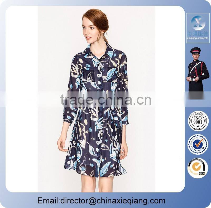 2016 Fashion Ladies Designer Dress Flower Printed Dress for Women