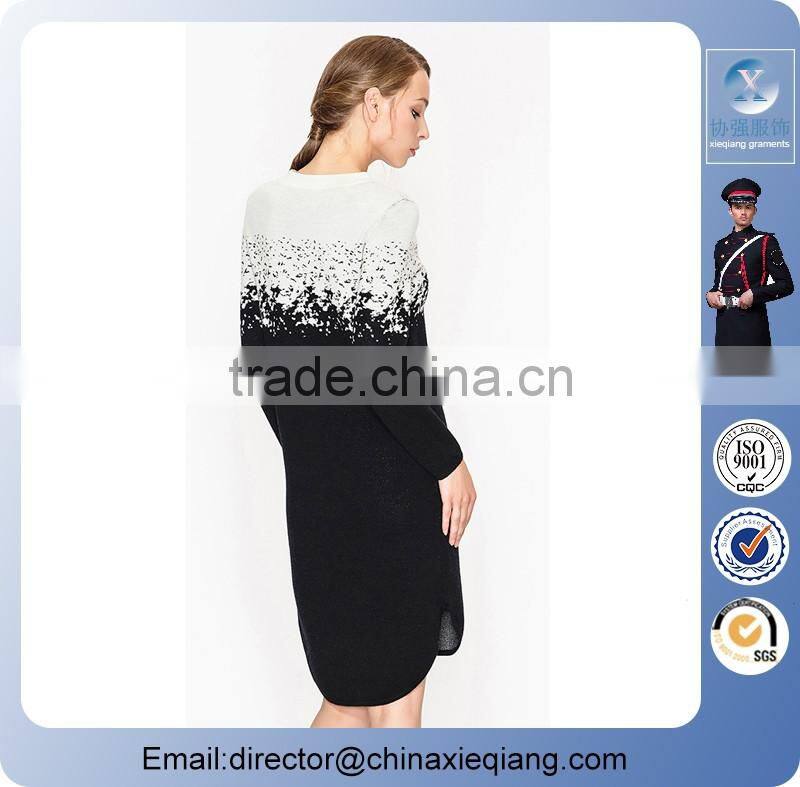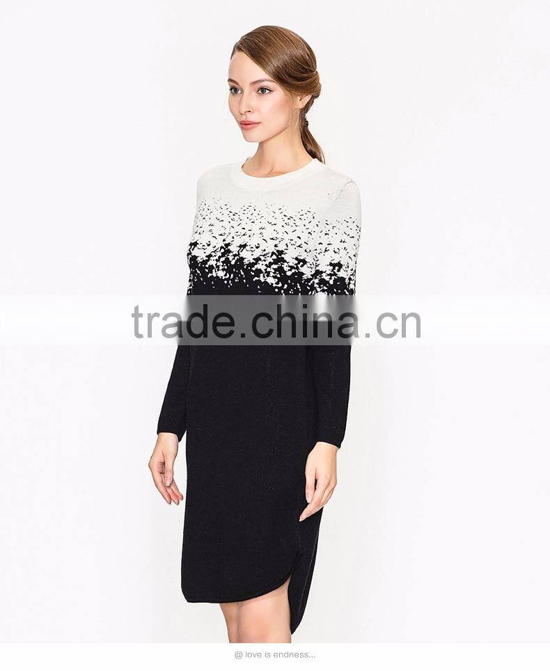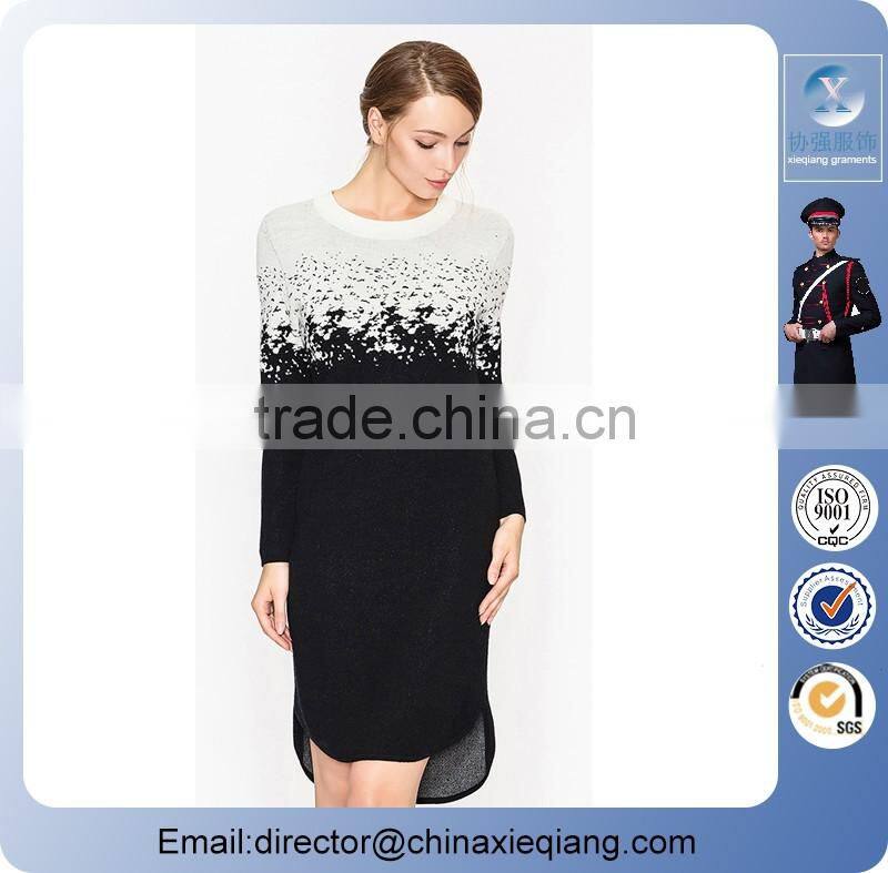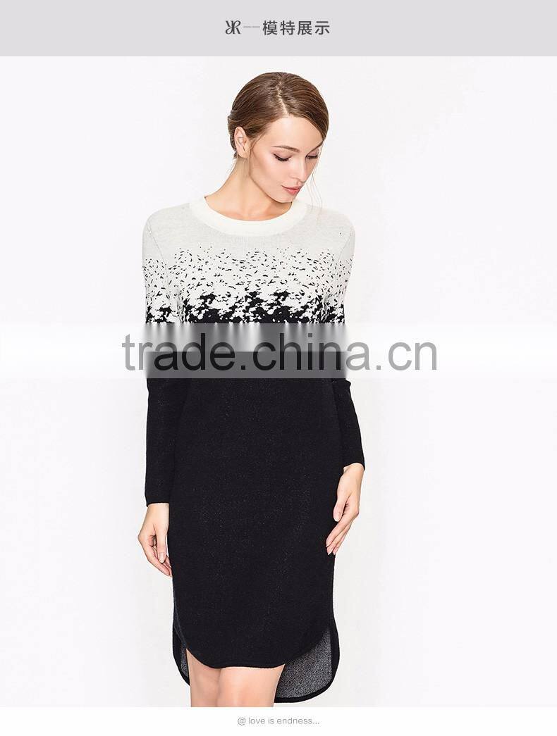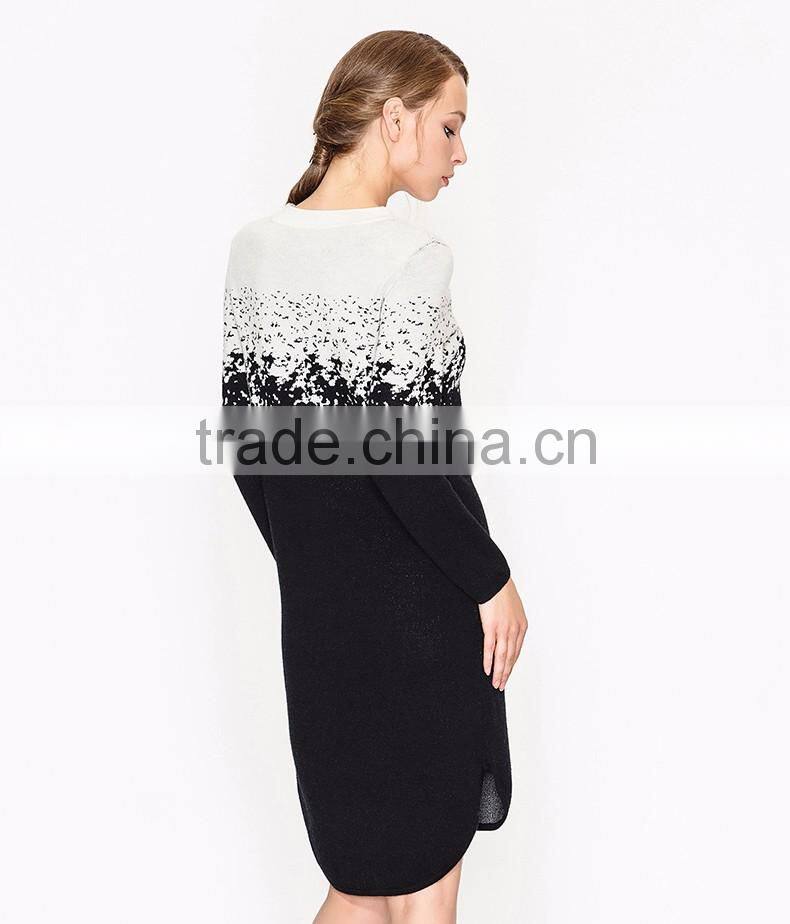 2016 Fashion Ladies Designer Printed Dress Knitted Woolen Dress for Women