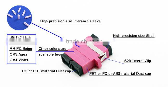 China 's SC OM3 Flangeness Fiber Optic Adaptor WITH LOW Price