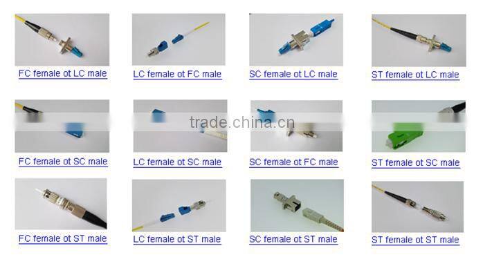 OMC could supply standard types of Adaptors, such as SC-FC, SC-ST, FC-ST, SC-LC, FC-LC and ST-LC etc. Hybrid adaptor.